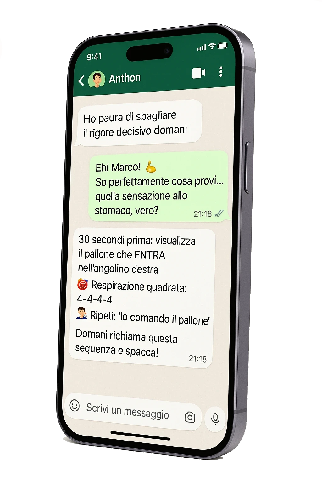 Conversazioni reali su WhatsApp per migliorare la mentalità, la fiducia e la comunicazione, sia dentro che fuori dal campo.